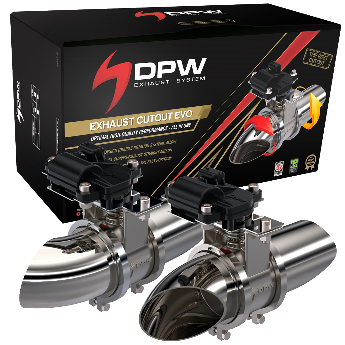 DPW Electric Exhaust Cutout EVO for Dual Exhaust 2.5 in with APP combines technology and craftsmanship with its exclusive DRS Design (double rotation system 360 degrees), allowing an easy installation and mounting customization.