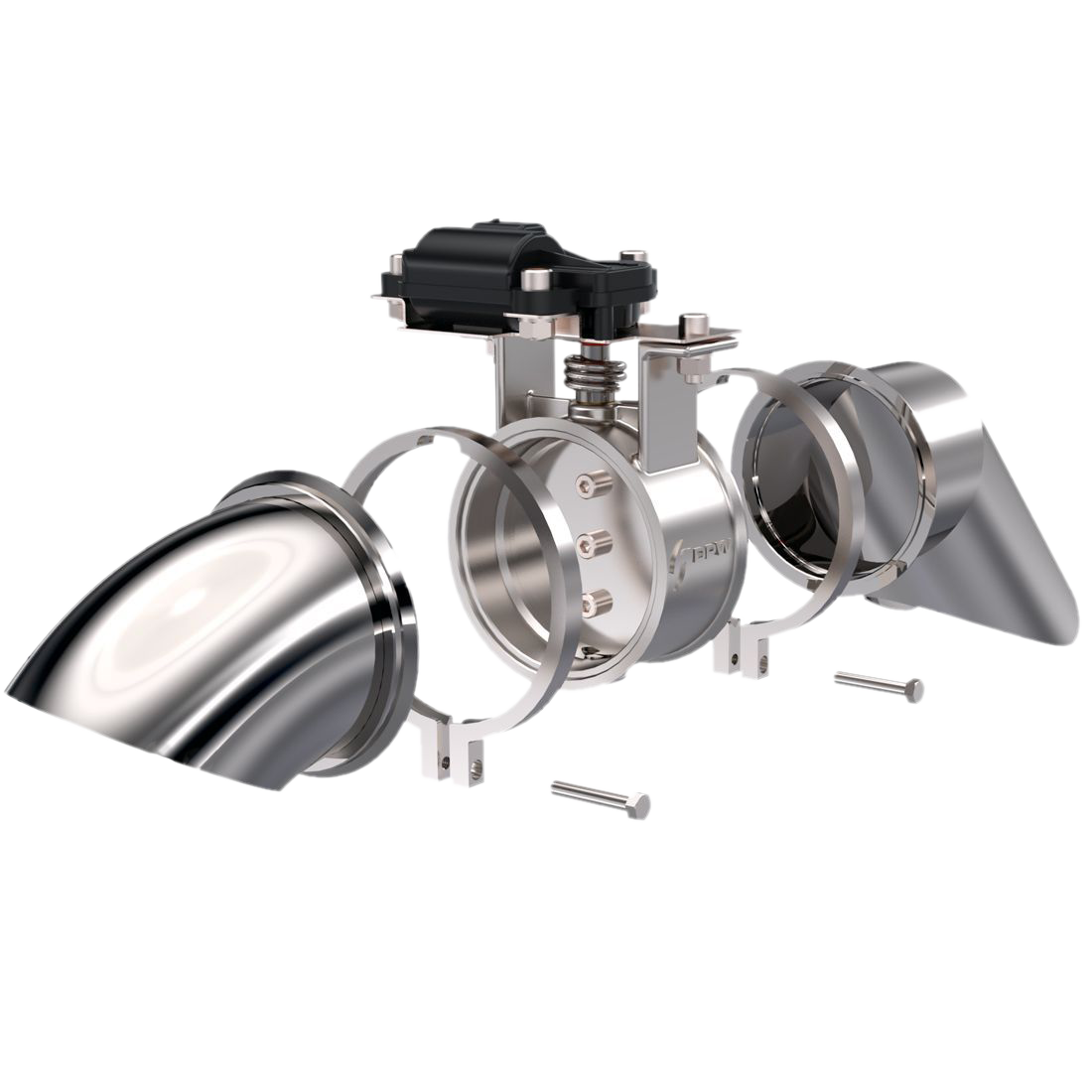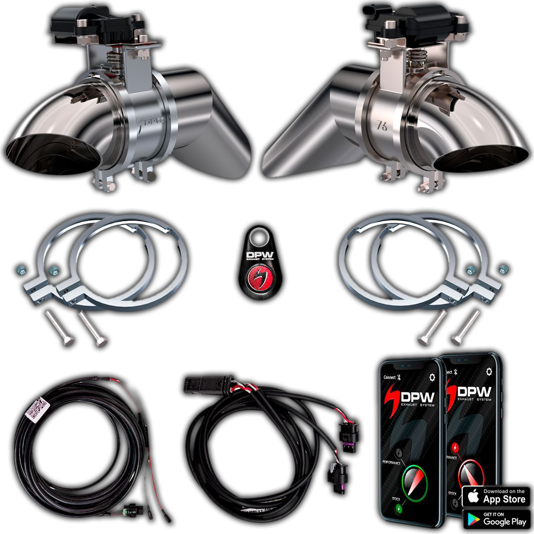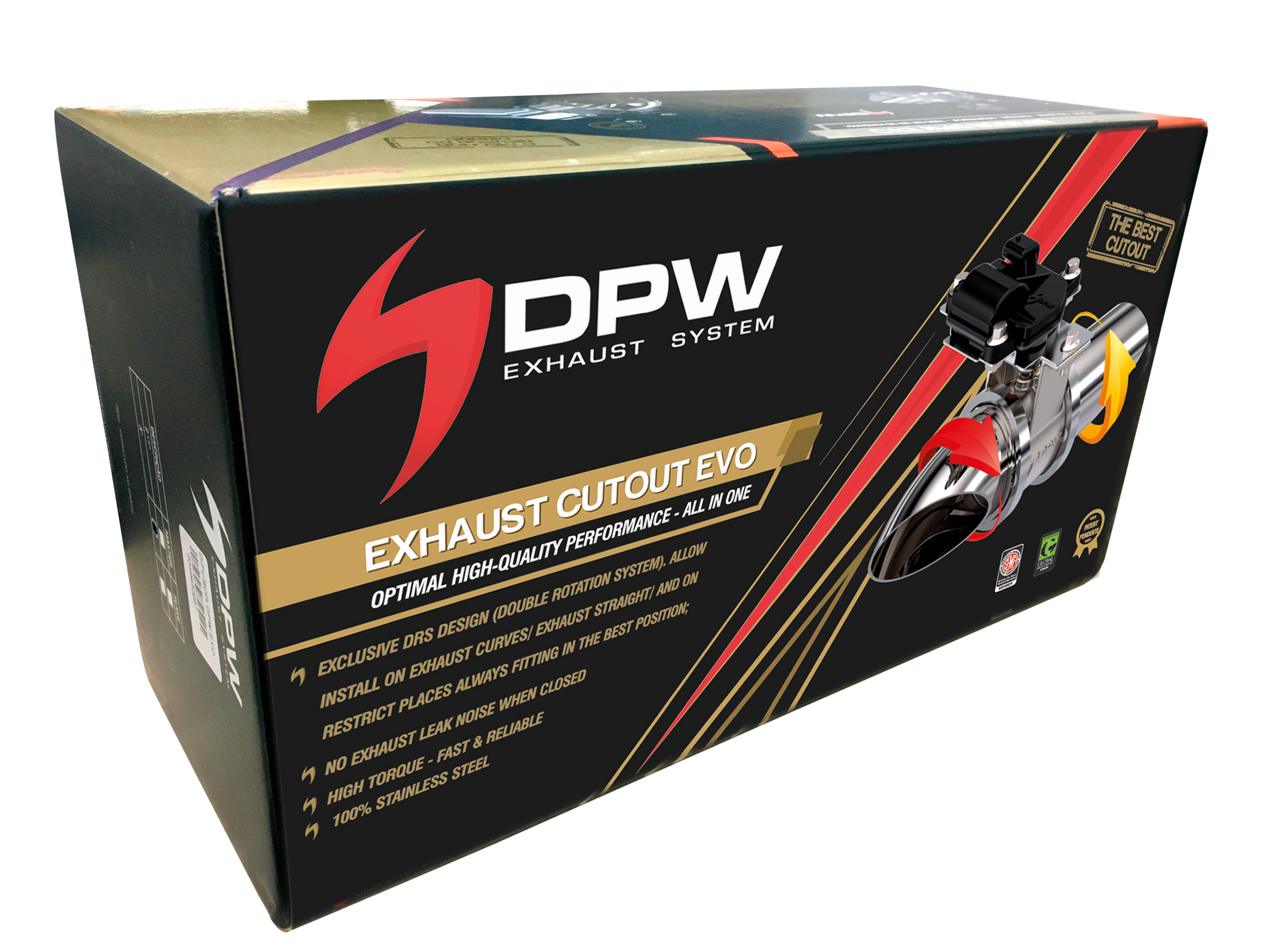 DPW Electric Exhaust Cutout EVO for Dual Exhaust 3 in with APP combines technology and craftsmanship with its exclusive DRS Design (double rotation system 360 degrees), allowing an easy installation and mounting customization.